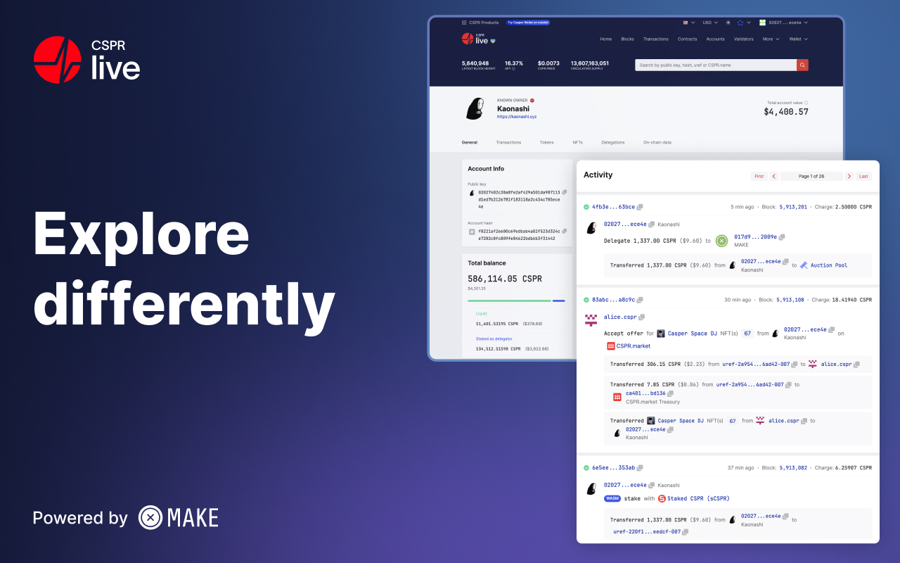 “MAKE’s contributions to the Casper Network project have advanced our ecosystem in numerous ways. Their focus on user experience has made Casper one of the easiest blockchains to use, while their developer tools and platforms make it a breeze for engineers to create applications for Casper.”